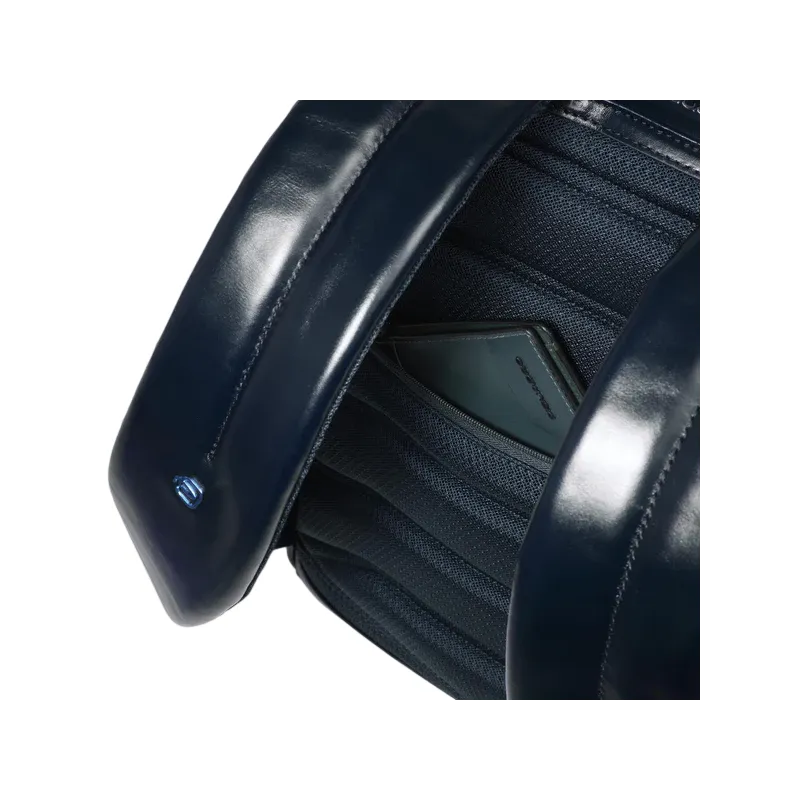 Backpack from Piquadro's Blue Square collection, made of natural leather, its small size makes it practical for everyday use. It has two zippered compartments, one of which is organised with dedicated space for computers and iPads, and in the back it is equipped with a trolley strap.