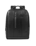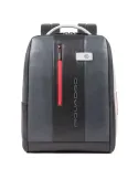 Splendid backpack from Piquadro's Urban collection, made of smooth natural leather, with double zipped compartment, one of which is equipped with a notebook and iPad compartment, side pockets for bottles and umbrellas.