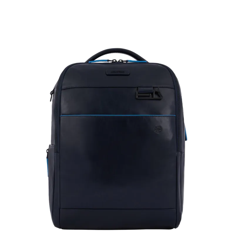 Piquadro Blue Square Revamp 14" laptop leather backpack, blue