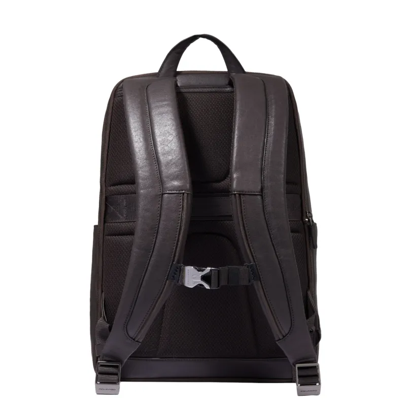 Piquadro Black Square compact 14 PC leather backpack, dark brown