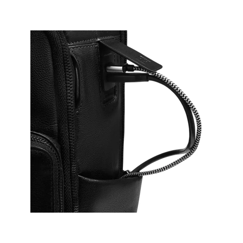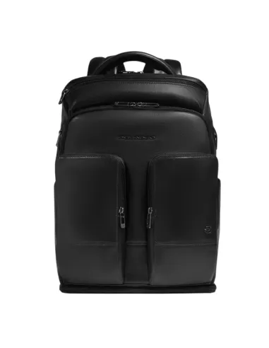 The Piquadro Philip travel backpack combines premium natural leather with cutting-edge functionality, making it the ideal companion for business trips and daily use. It features a 15.6” laptop compartment, iPad® pocket, RFID protection, and an integrated anti-theft cable.