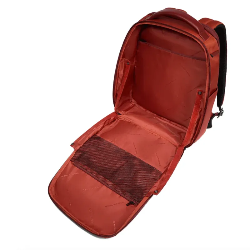 Piquadro collections include laptop backpacks in various sizes – from compact tablet models to larger ones for 17” devices, some with compartments for clothing – as well as briefcases, business bags, travel backpacks, and trolleys in polycarbonate or technical fabric with TSA locks and USB ports.