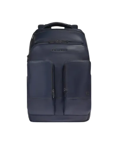 Piquadro Philip leather backpack 15.6 inch with RFID shock absorber, blue