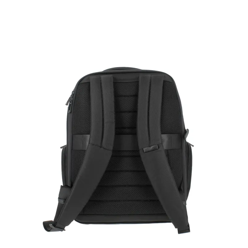 Piquadro collections include laptop backpacks in various sizes – from compact tablet models to larger ones for 17” devices, some with compartments for clothing – as well as briefcases, business bags, travel backpacks, and trolleys in polycarbonate or technical fabric with TSA locks and USB ports.