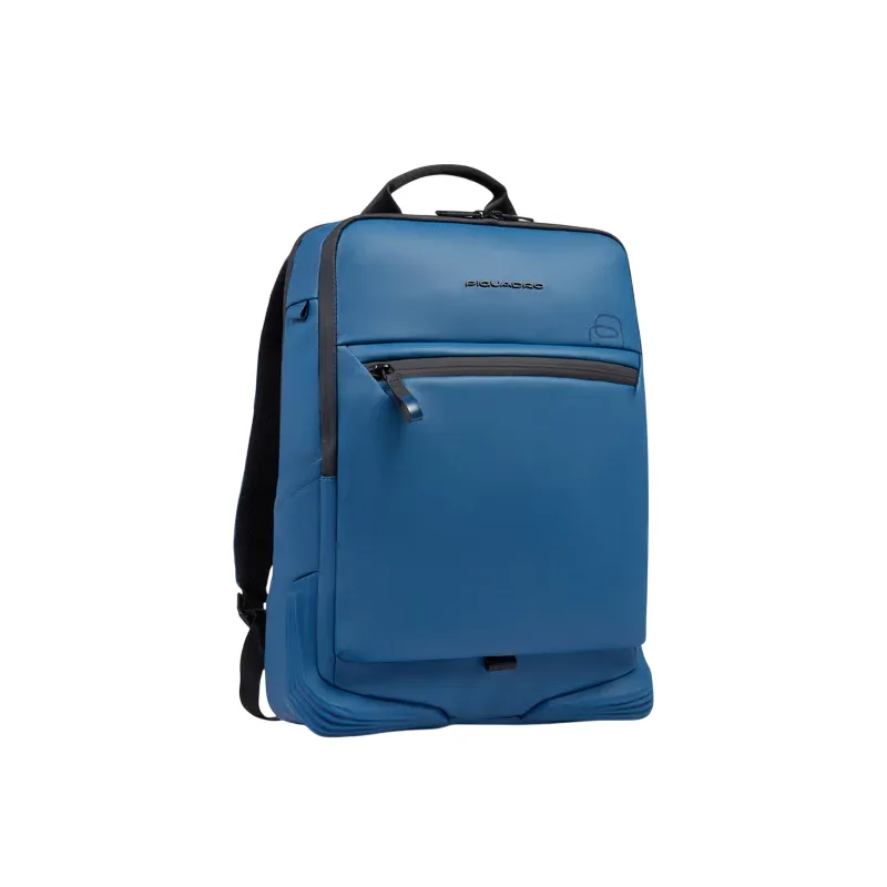 Piquadro collections include laptop backpacks in various sizes – from compact tablet models to larger ones for 17” devices, some with compartments for clothing – as well as briefcases, business bags, travel backpacks, and trolleys in polycarbonate or technical fabric with TSA locks and USB ports.