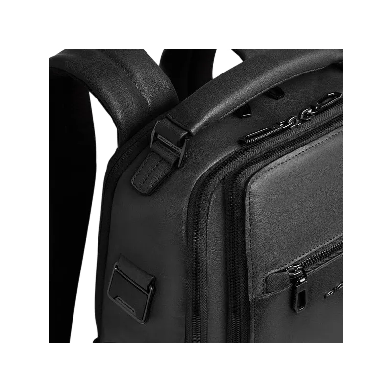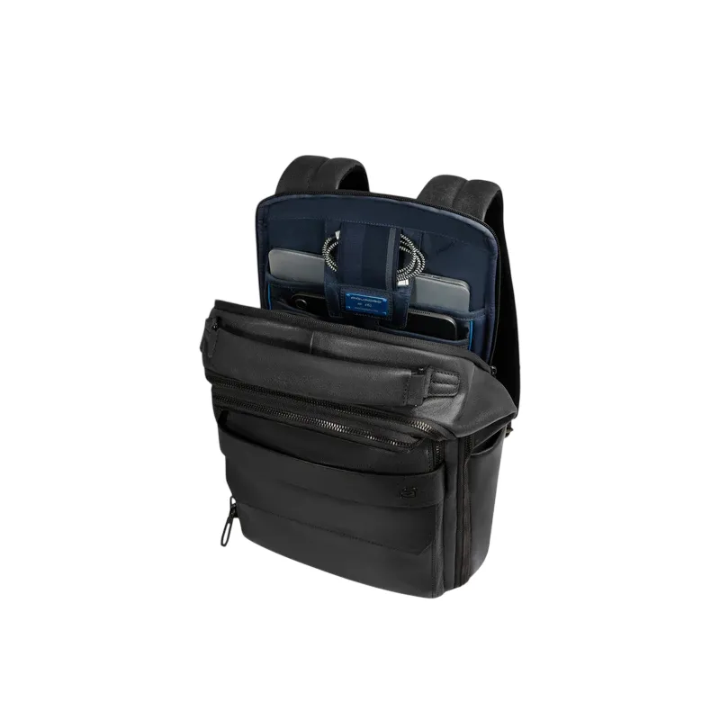 Piquadro Solm leather travel backpack with 14 laptop compartment, black