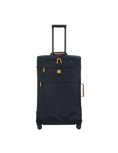 Trolley size XL 77cm from the X-Collection by Brics, made of strong recycled nylon and leather trim, with a rigid and light structure. It has a zipped main opening, two zipped front pockets, internal pockets and straps for optimal organisation. The wheels swivel to ensure easy 360° movement, and are recessed to maximise the internal capacity of the trolley. Equipped with an integrated address holder.