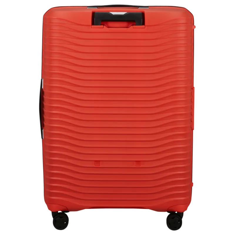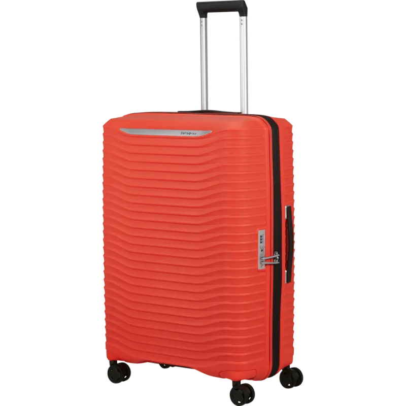 Lightweight and strong large size trolley from Samsonite's Upscape collection, made of 100% polypropylene, with expansion possibilities, top and side handles, dual internal compartment with divider and tie-down straps, zip, combination and tsa lock required for US travel, 4-wheel dual trolley towing.