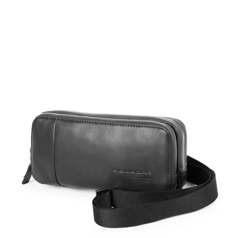 Astuccio con manico della collezione urban di Piquadro,realizzato in pelle naturale dall'effetto liscio,dotato di tre scomparti organizzati con spazi per carte di credito.