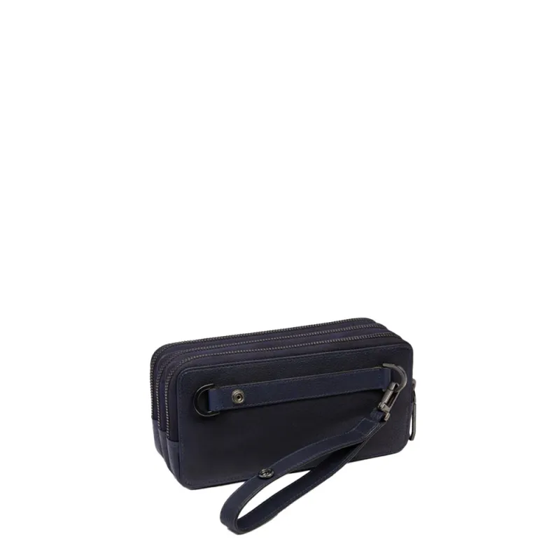 Most leather goods are crafted from Italian full-grain leather or technical and mixed materials. The brand also offers wallets for men and women, key holders, leather belts, and tech accessories such as wireless chargers and leather AirPods cases. Many items come with RFID protection.