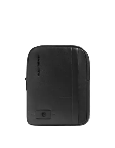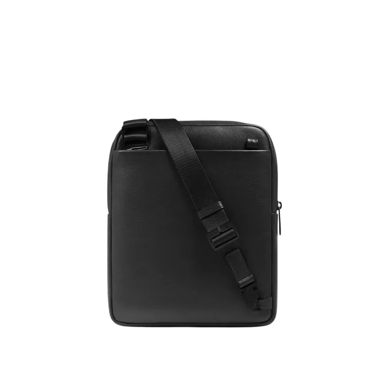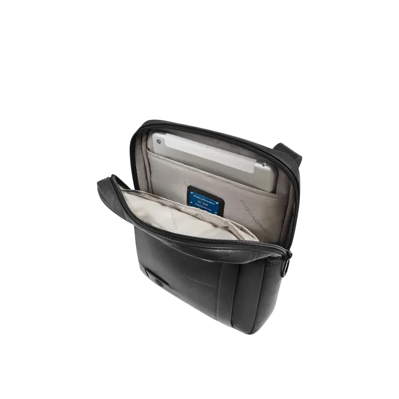 Piquadro Russel Leather Crossbody Bag with iPad Compartment and RFID, black