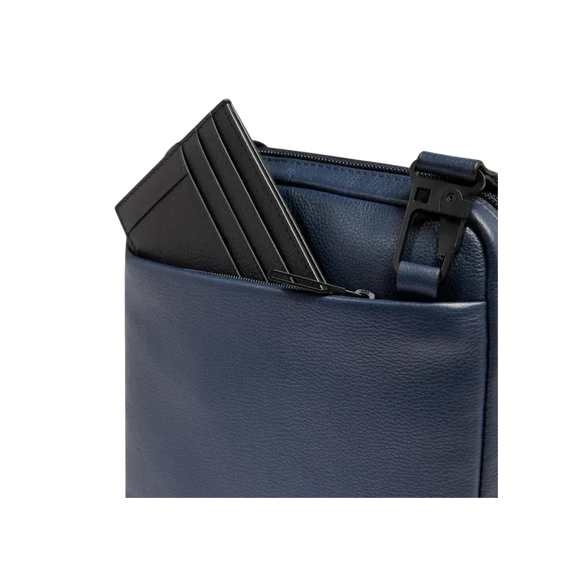 Piquadro Russel Small Leather Crossbody Bag with iPad Slot and RFID, blue