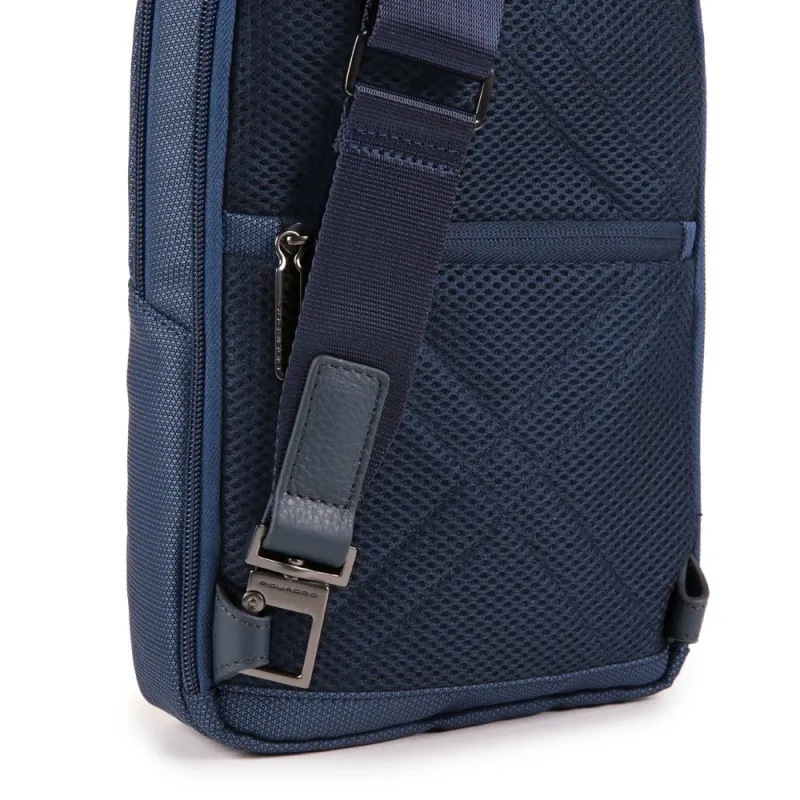 Mono sling bag from the Piquadro's Trakai collection, made of recycled fabric with, iPad®mini compartment.