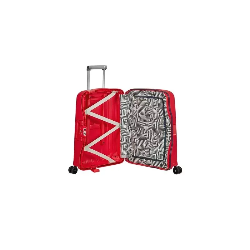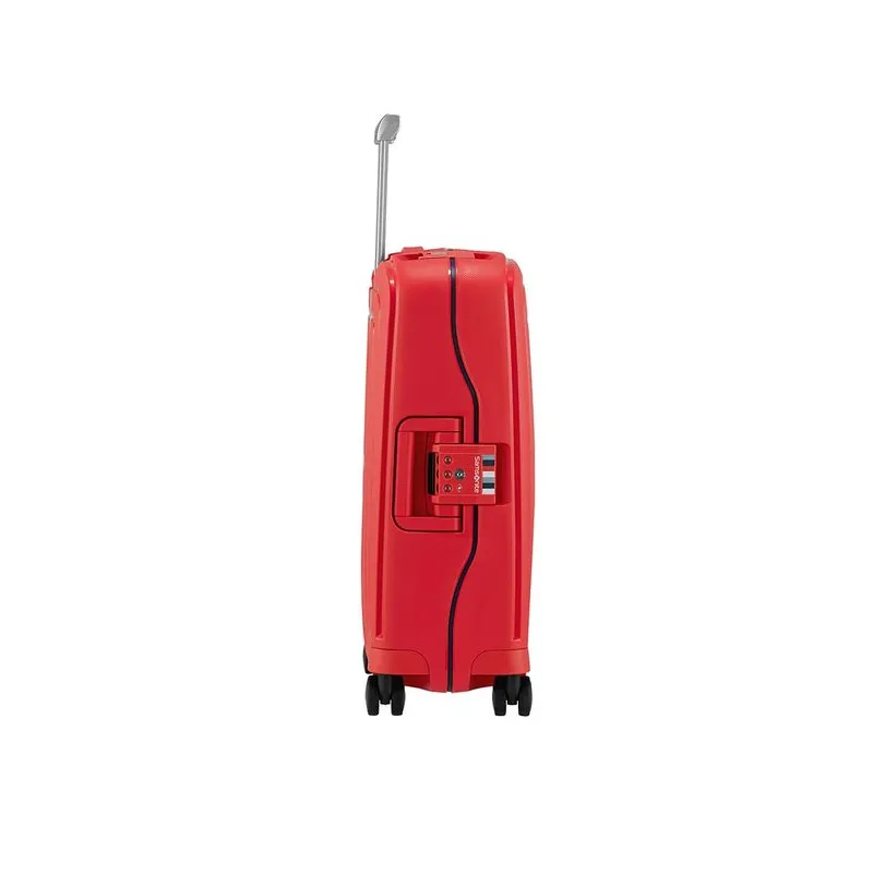 Cabin trolley of the Scure collection by Samsonite, made of 100% Polypropylene, equipped with 4 wheel drive, 3-point locking-system with combination and TSA function necessary for travel in the USA, internally divided into two comfortable compartments.