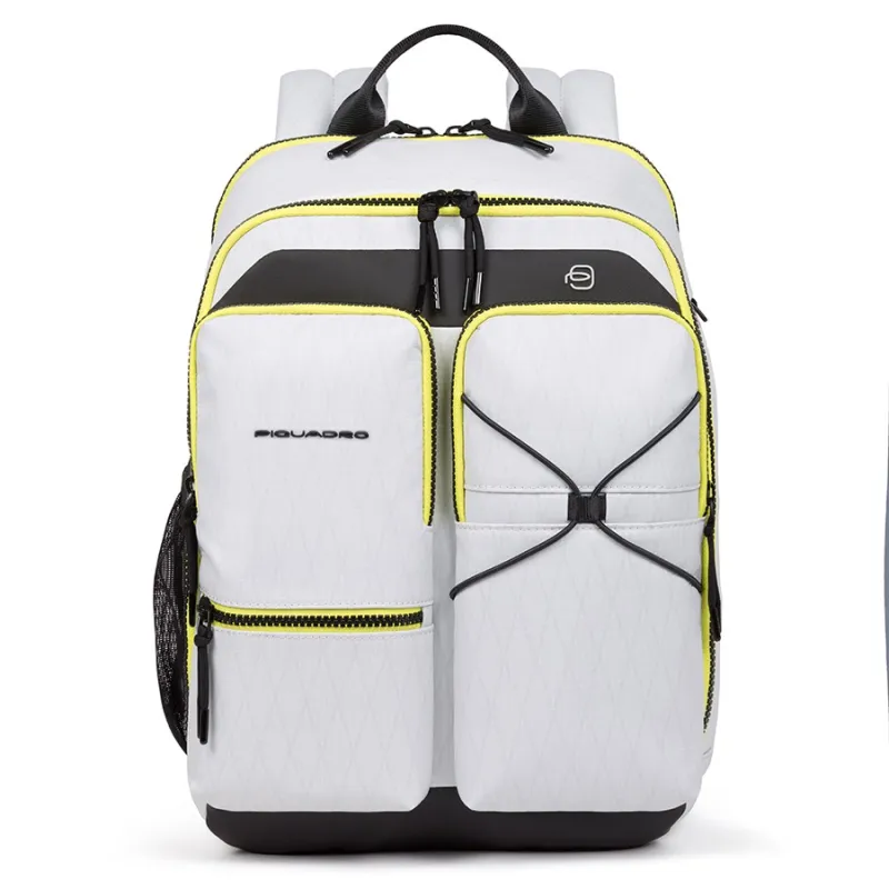 Piquadro collections include laptop backpacks in various sizes – from compact tablet models to larger ones for 17” devices, some with compartments for clothing – as well as briefcases, business bags, travel backpacks, and trolleys in polycarbonate or technical fabric with TSA locks and USB ports.