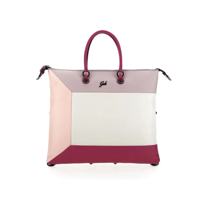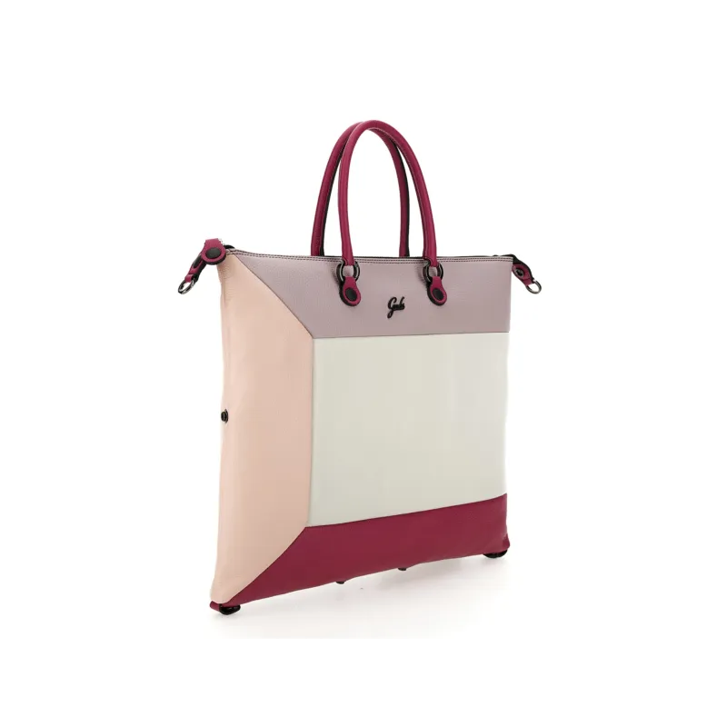 Gabs G3 Plus L size bag from the Mauritius collection, evolution of the iconic G3, the G3 PLUS has even more transformations: from a flat bag it becomes a shopper, a satchel, a shoulder bag and in the end even a backpack! Made of multicoloured natural leather, with double leather handles, adjustable and removable ribbon shoulder straps, cotton lined inside, with two open inside pockets and one zipped pocket. It also includes a folding fabric shopping bag and a logo leather bottom that helps to maintain the shape of the bag.