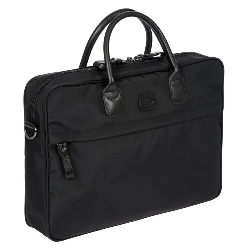 Laptop Briefcase from Bric's X-Travel collection, made in durable, easy-to-clean satin nylon, with two handles, detachable and adjustable shoulder strap ans it is equipped with trolley strap.