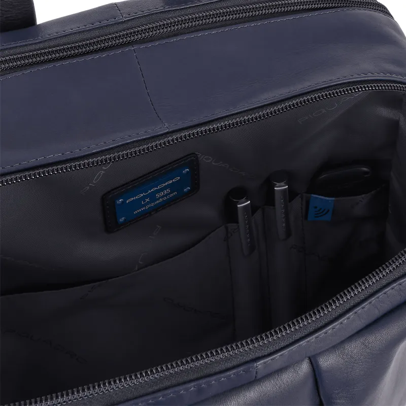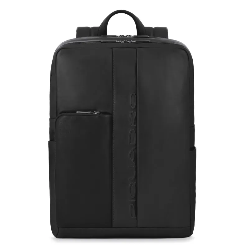 Piquadro collections include laptop backpacks in various sizes – from compact tablet models to larger ones for 17” devices, some with compartments for clothing – as well as briefcases, business bags, travel backpacks, and trolleys in polycarbonate or technical fabric with TSA locks and USB ports.