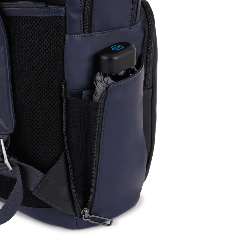 Computer backpack from the Steven collection by Piquadro, made from natural leather, with double zipped compartment, one of which has a padded pocket for computer and iPad®, side pockets for bottles and umbrella, front pocket with zip, top handle, adjustable and padded shoulder straps, breathable back with pocket for attaching to trolley.