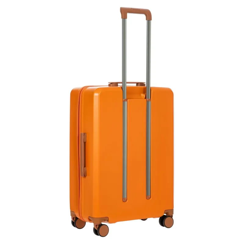 The Ravenna Collection Medium trolley features a bright colour and is made of polypropylene, a lightweight and durable material. The opening has a double-slider zipper, embellished with a tone-on-tone finish. The TSA padlock is integrated. The four wheels are silent and swivel to ensure smooth 360° movement. They are also recessed to maximise trolley capacity. Internally, the trolley has a zippered pocket and is divided into two separate compartments to help organise your belongings. Finished with a fabric lining. For ease of use, the towing system consists of strong and stable, multi-stop aluminium tubes with ergonomic grip. The trolley is embellished with Bric's refined logo.