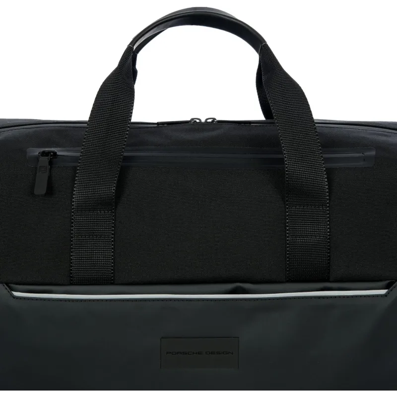 Duffel bag from the Urban Eco collection by Porsche Design, with two handles, zip opening, back trolley attachment loop, front pocket, adjustable and removable shoulder strap.