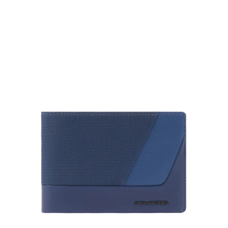 Piquadro Wallaby leather men's wallet with flip up ID window, blue