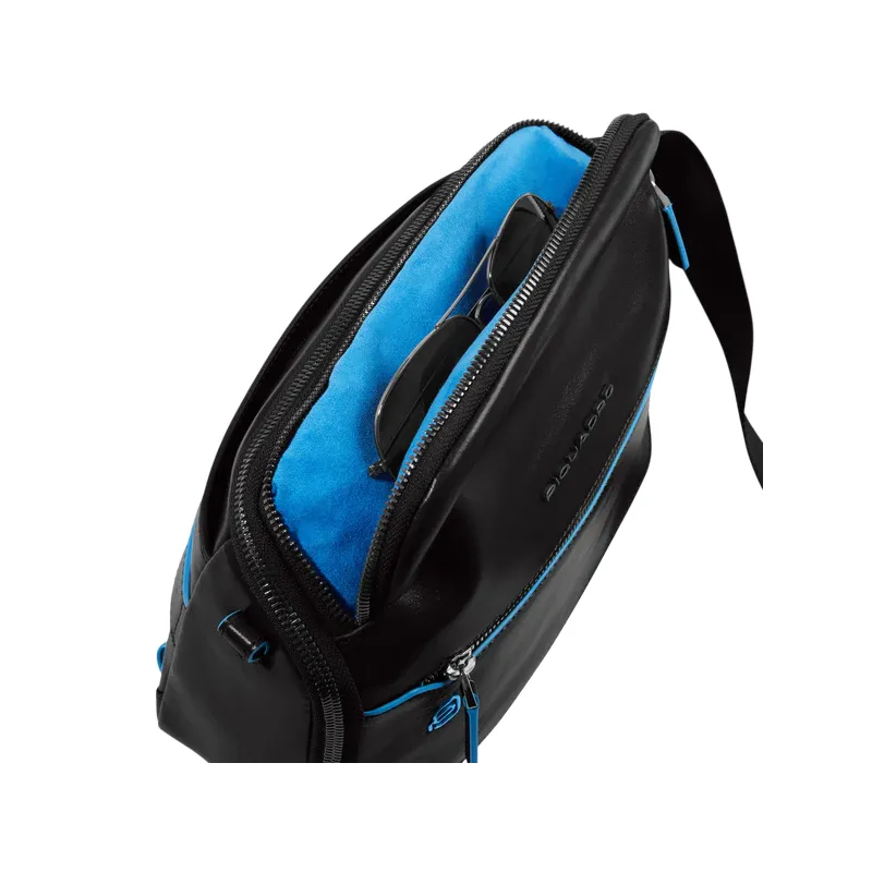 Piquadro Blue Square horizontal men's cross-body bag, black