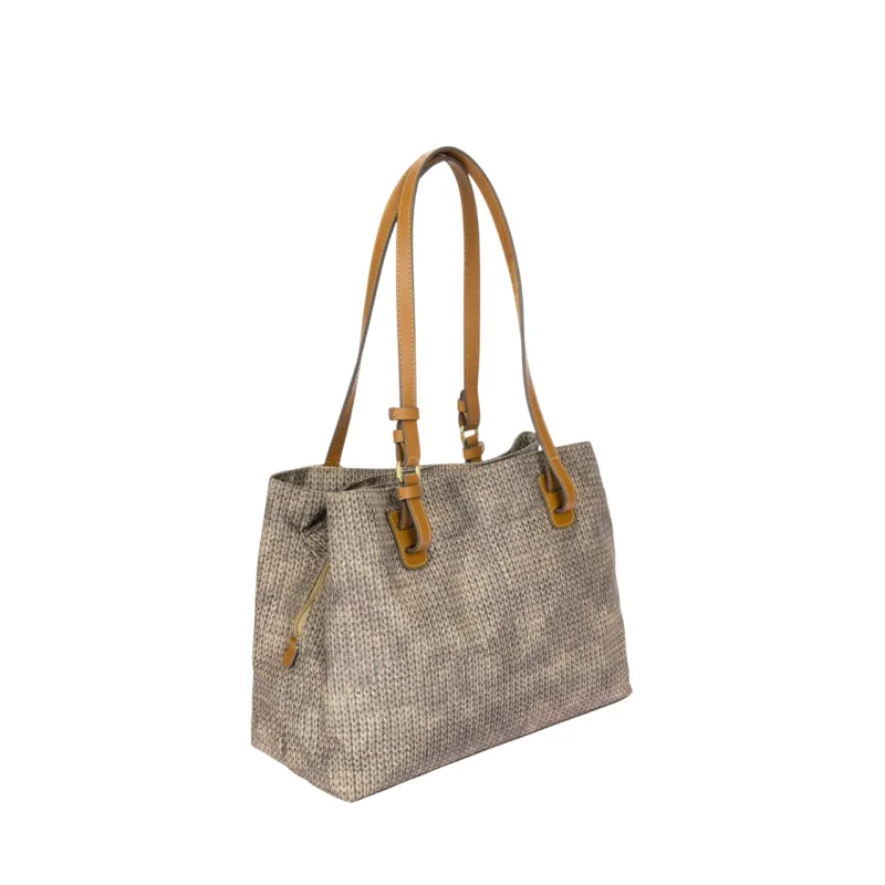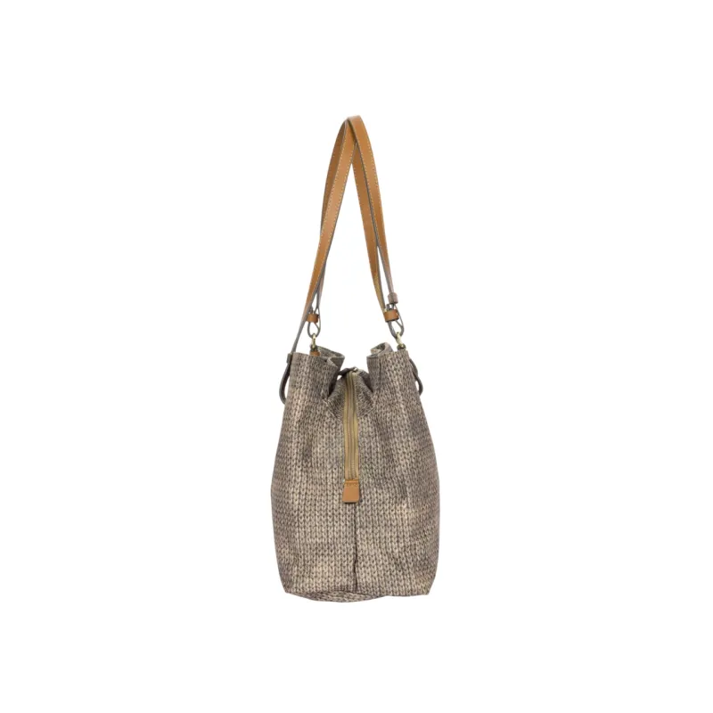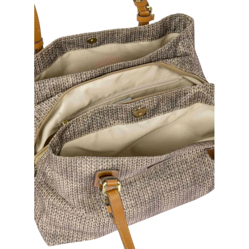 Brics Fabric and Leather Three-Compartment Medium Shopping Bag, Wool Nut