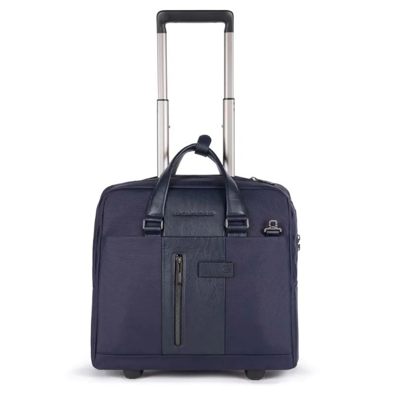 Piquadro Brief2 Slim, wheeled computer briefcase in recycled fabric with iPad® compartment, blue