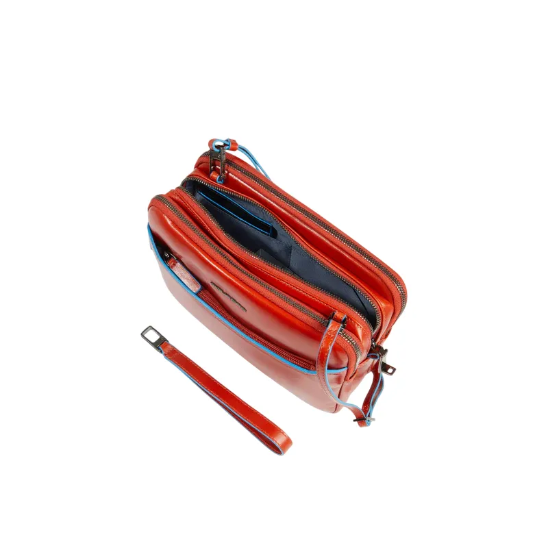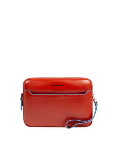 Men's clutch bag with Piquadro Blue Square imprint clasp, orange