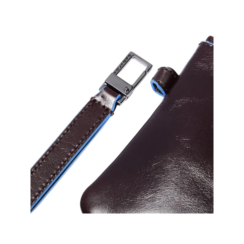 Piquadro Blue Square slim leather men's clutch bag, dark brown