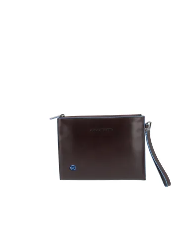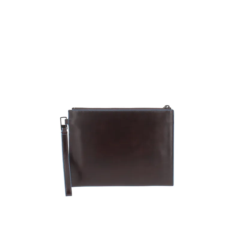 Piquadro Blue Square flat Leather Pouch for Men, dark brown