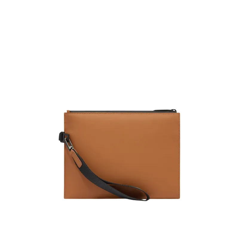 Most leather goods are crafted from Italian full-grain leather or technical and mixed materials. The brand also offers wallets for men and women, key holders, leather belts, and tech accessories such as wireless chargers and leather AirPods cases. Many items come with RFID protection.