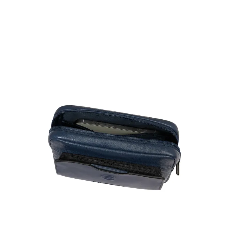 Piquadro Ael mens leather pouch with shoulder strap, blue