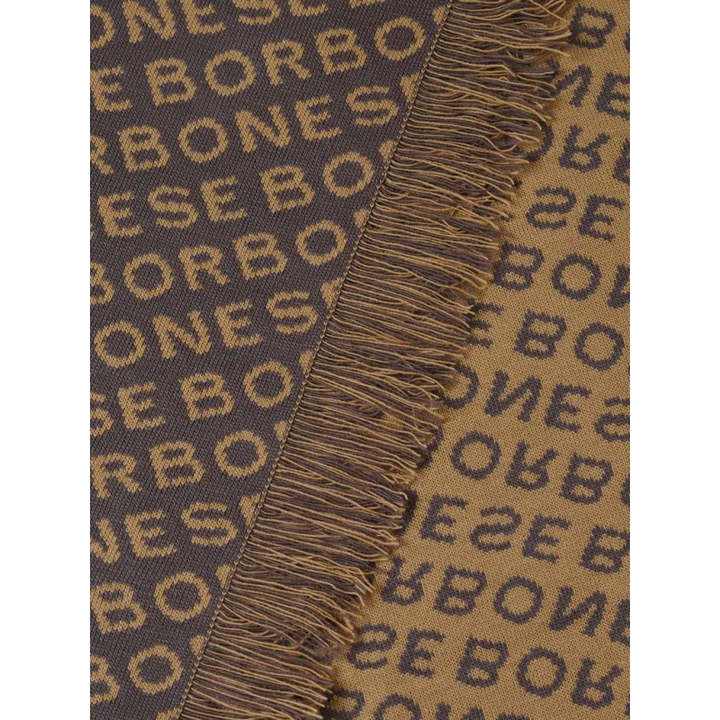 Borbonese all-over embroidered knitted scarf, dove-camel
