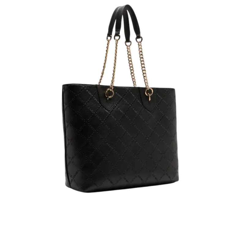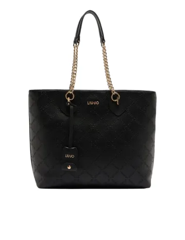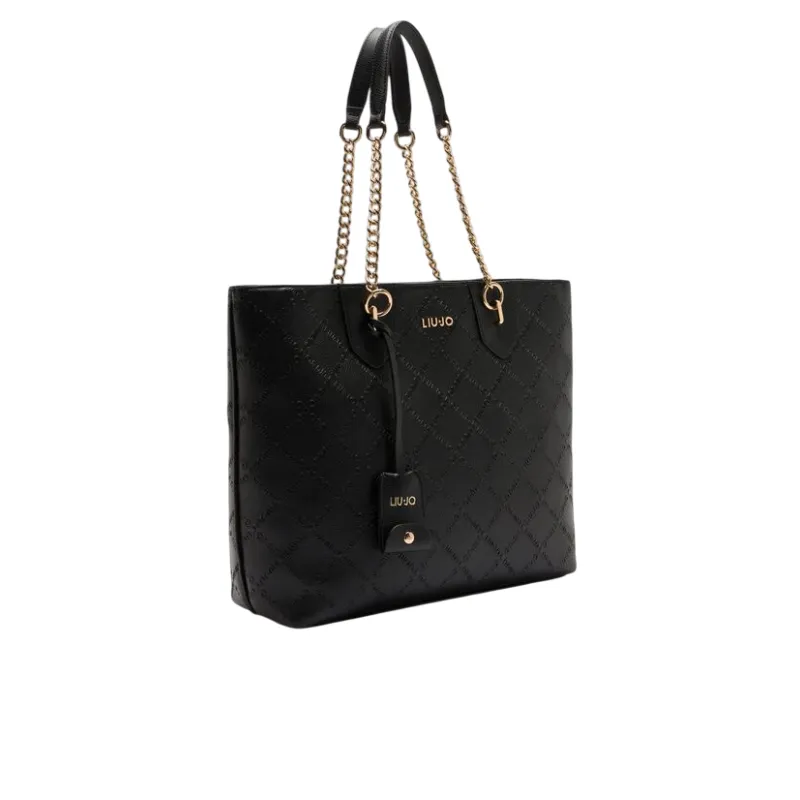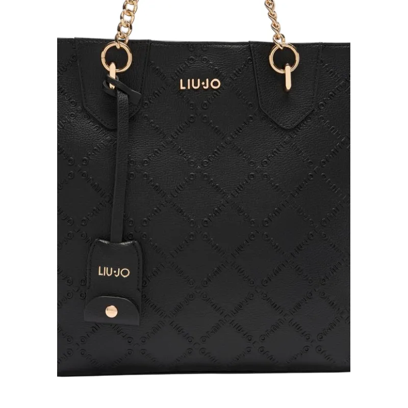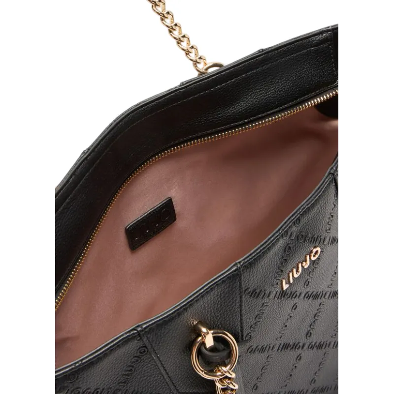 Liu Jo shopping bag with chain handles embossed logo and zip closure, black
