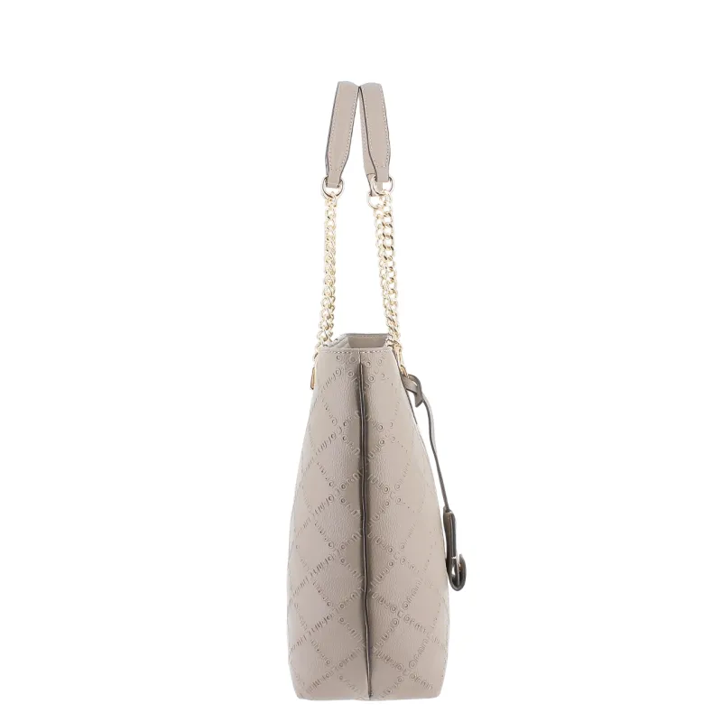 Liu Jo shopping bag with chain handles embossed logo and zip closure, taupe