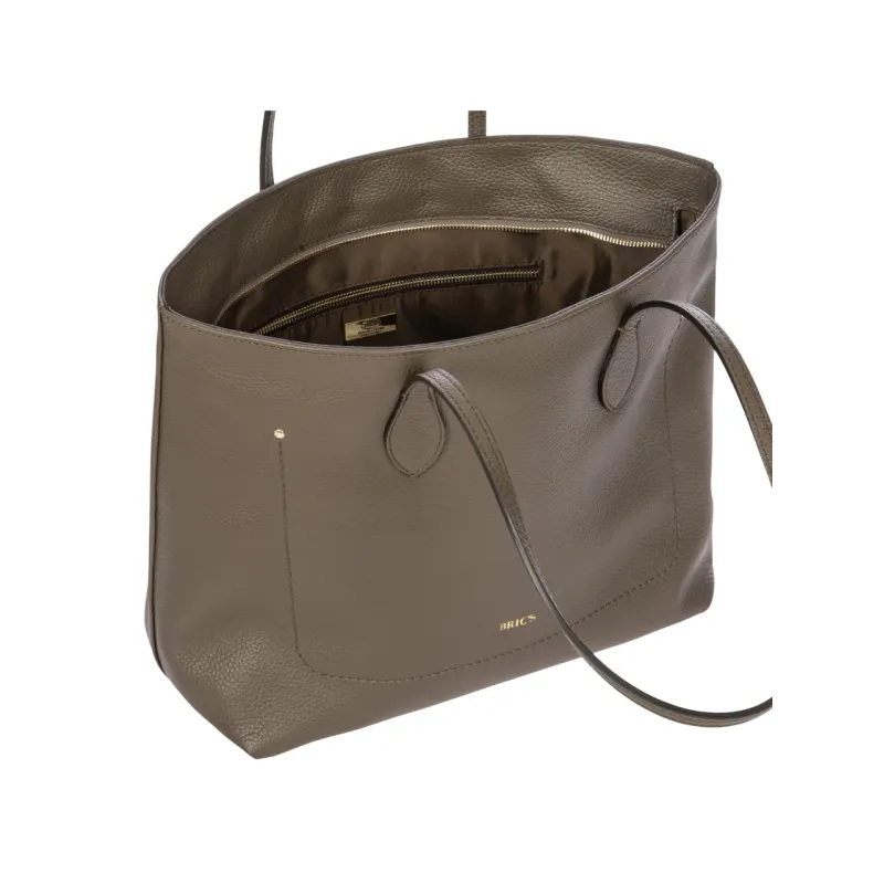 The Brics Gondola collection is entirely designed and made in Italy, representing the excellence of Italian craftsmanship and timeless elegance. The shopping bag, made from genuine leather, perfectly combines refined design with everyday practicality. The thin and soft handles allow comfortable shoulder wear, ensuring lightness and ease of use throughout the day. The soft, durable leather is enhanced by the elegant Brics logo embossing, a hallmark of authentic Italian style. The zip closure provides security and functionality, while the internal pockets offer practical organization for all personal items. Gold-finish metal details complete the sophisticated look with a subtle shine. The Brics Gondola shopping bag is ideal for the modern woman who values elegance, comfort, and the superior quality of Made in Italy.