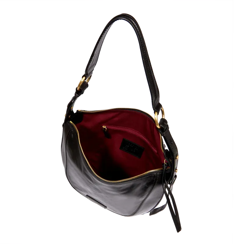 Women's shoulder bag from The Bridge's Fedora line, featuring a zip closure and adjustable shoulder strap.