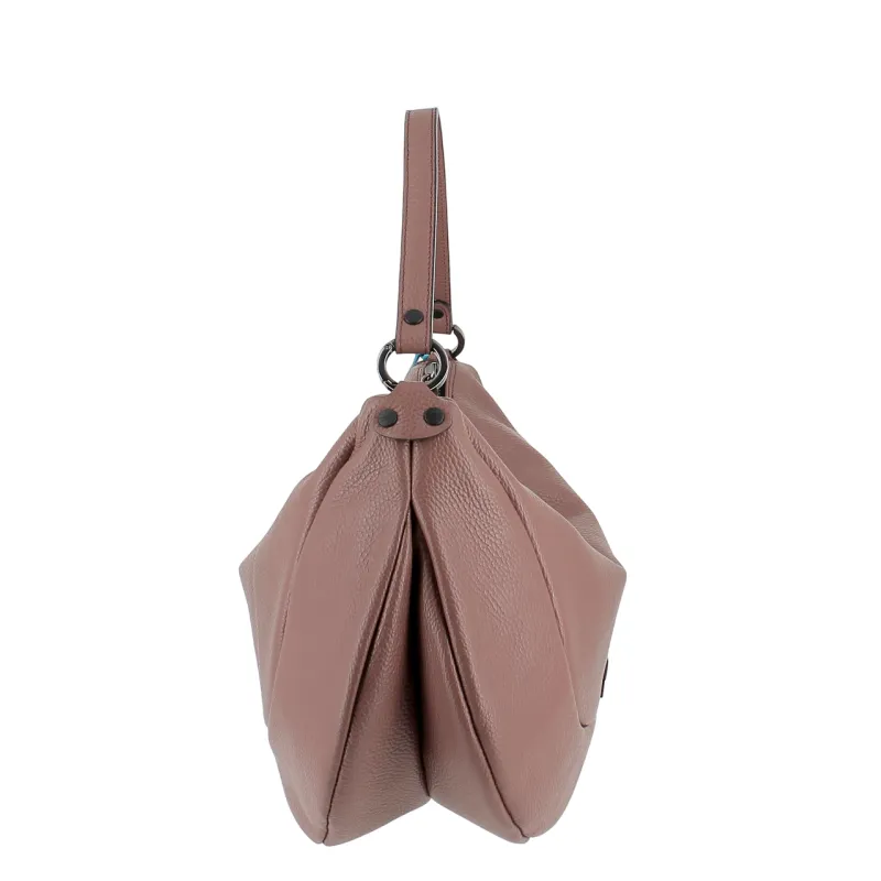 Borbonese Bridle Shoulder Bag in Nappa Leather & Suede, dark brown