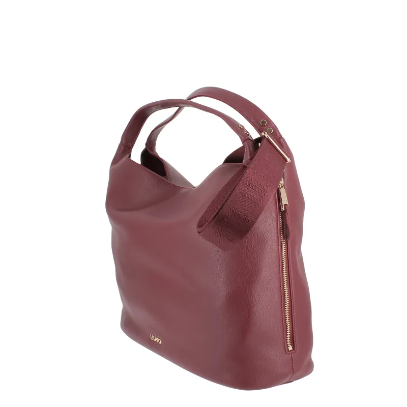 Liu Jo Shopping Bag Pebble Texture & Logo Strap, red wine