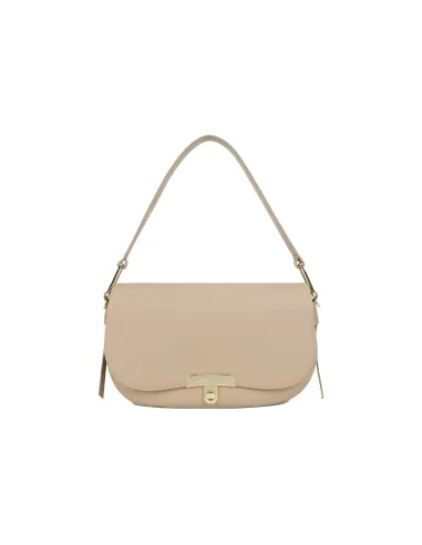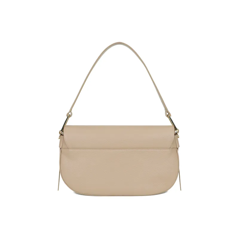 Braccialini Michelle Leather Shoulder Bag, Gold Clasp & Elegant Design, taupe