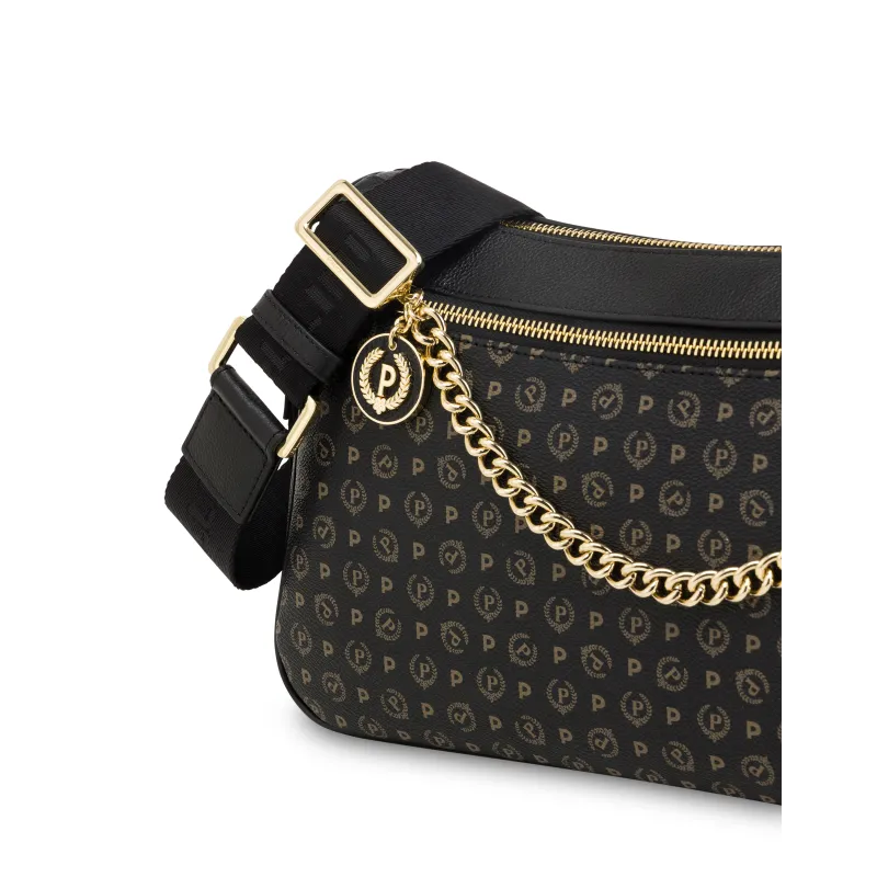 Pollini heritage women's bag with adjustable fabric shoulder strap, black