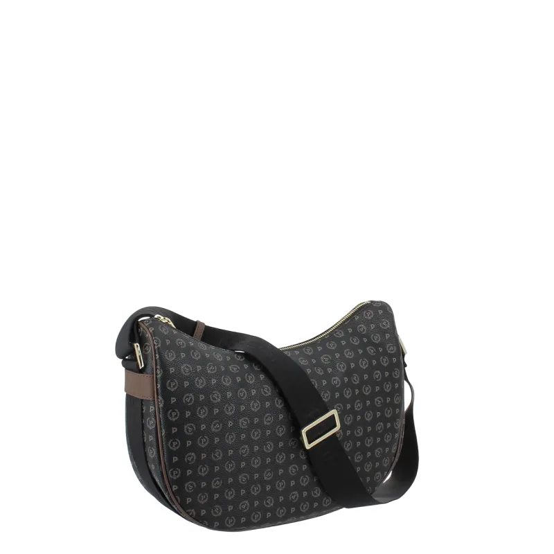 The Heritage PVC hobo bag by Pollini stands out for its soft silhouette and timeless charm. The iconic all over pattern gives the bag an elegant and refined appearance. The signature Pollini logo tape runs along the side, transforming into a functional shoulder strap and adding a distinctive design element. The top zip closure ensures security, while the adjustable shoulder strap with metal buckle provides personalized comfort. Light gold metal details enhance the overall look with a luminous and sophisticated touch. A versatile and stylish accessory perfect for elevating everyday outfits.