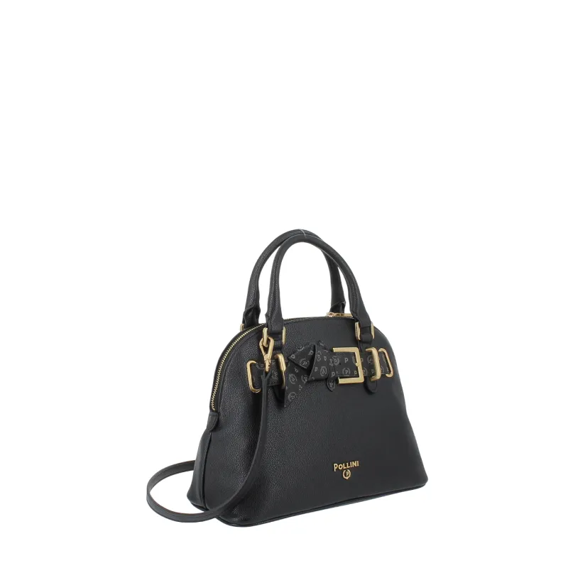 Pollini small top handle bag with Heritage bow elegant and versatile, black