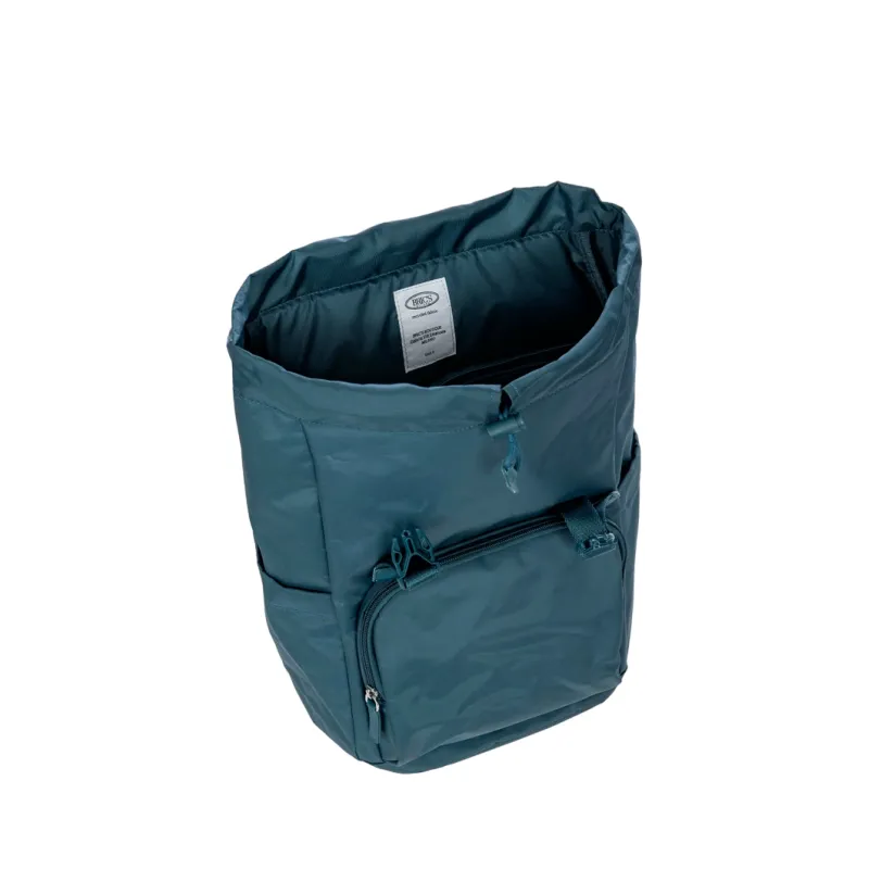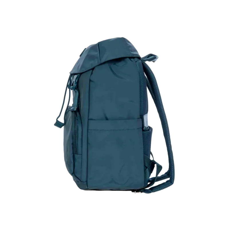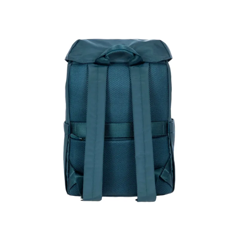 Zaino misura grande della Collezione Positano Soft di Bric's. Realizzato in tessuto riciclato, impermeabile, leggero e robusto, facile da pulire. Gli spallacci regolabili in lunghezza lo rendono comodo da indossare, dotato di chiusura con pattina e coulisse, tasca frontale con zip e tasche laterali, sistema di aggancio al trolley.