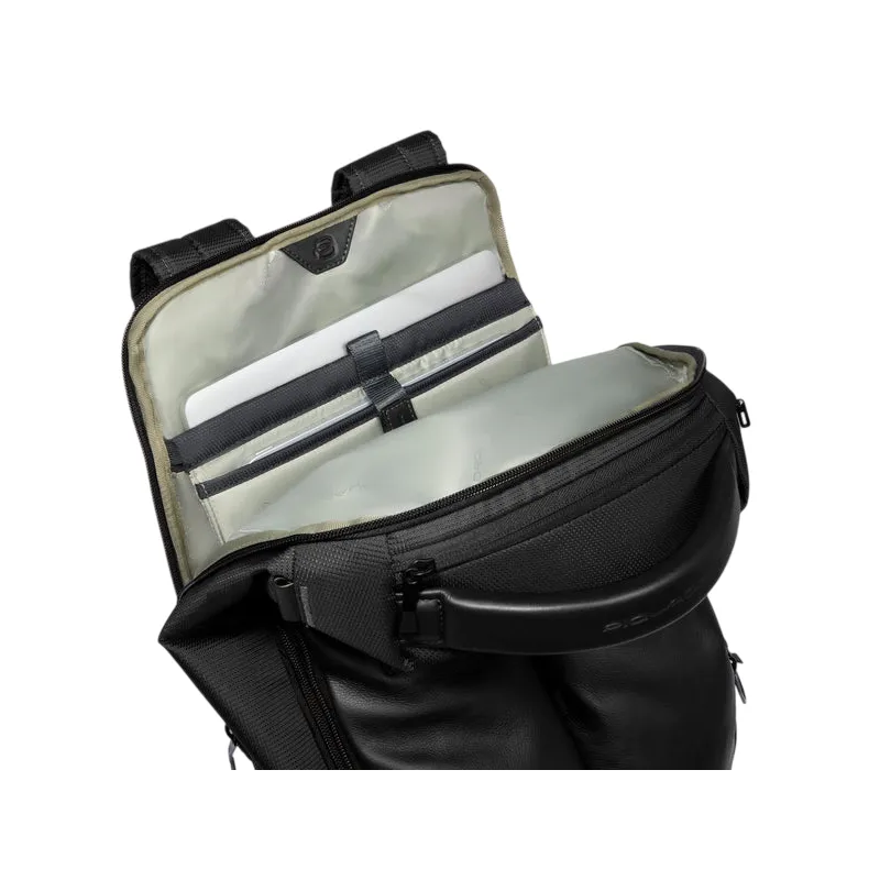Piquadro Travel backpack with 15.6 PC compartment in fabric and vegan leather, black