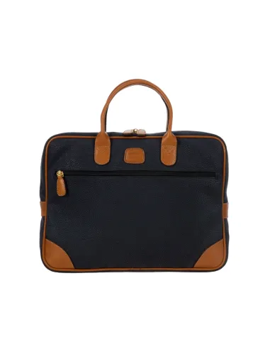 Briefcase from the Life collection by Brics, with two handles, zipped opening, padded internal compartment for computer and tablet, adjustable and removable shoulder strap, back loop for trolley attachment.