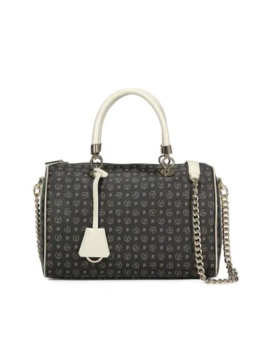 Two handles bag from Pollini's heritage collection, made of strong custom fabric with leather details, with zip opening and adjustable and detachable shoulder strap.