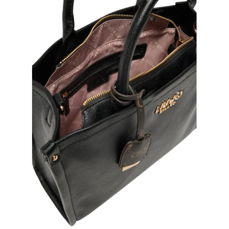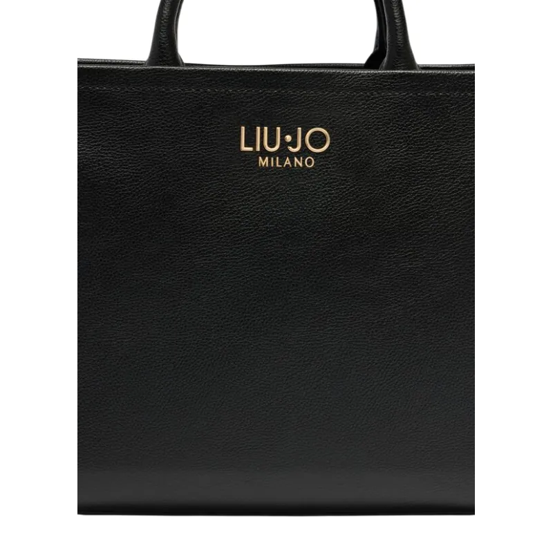 Liu Jo medium shopping bag with metal logo and adjustable strap, black
